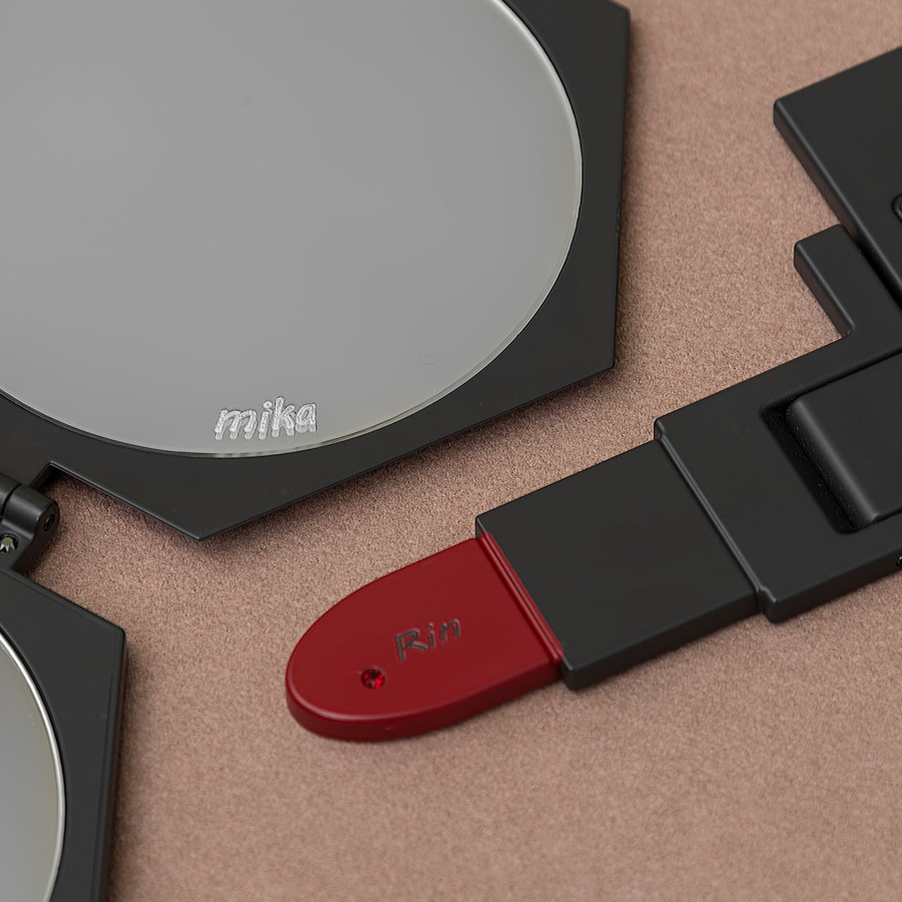 ・鏡、鏡枠共に最大限に薄型で軽量になるよう設計し、携帯用にも優れています。