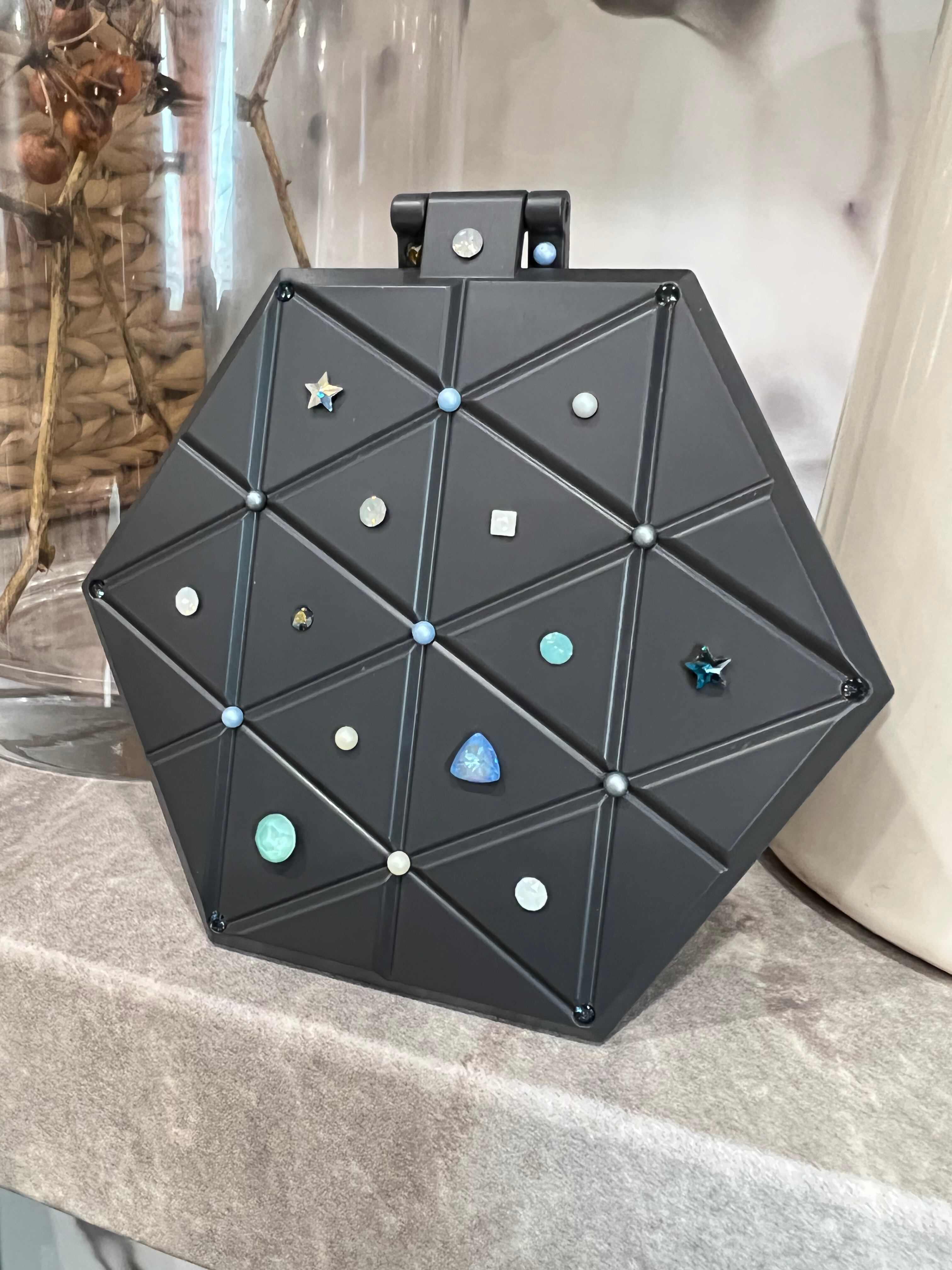 円形 、三角形、四角形、星形など様々な立体感のあるスワロフスキーをセレクトし無造作に施したnewデザイン。一つ一つのパーツの可愛いさはもちろんの事しっとりとした輝きも魅力的です。全体的に落ち着いた色味に仕上げております!