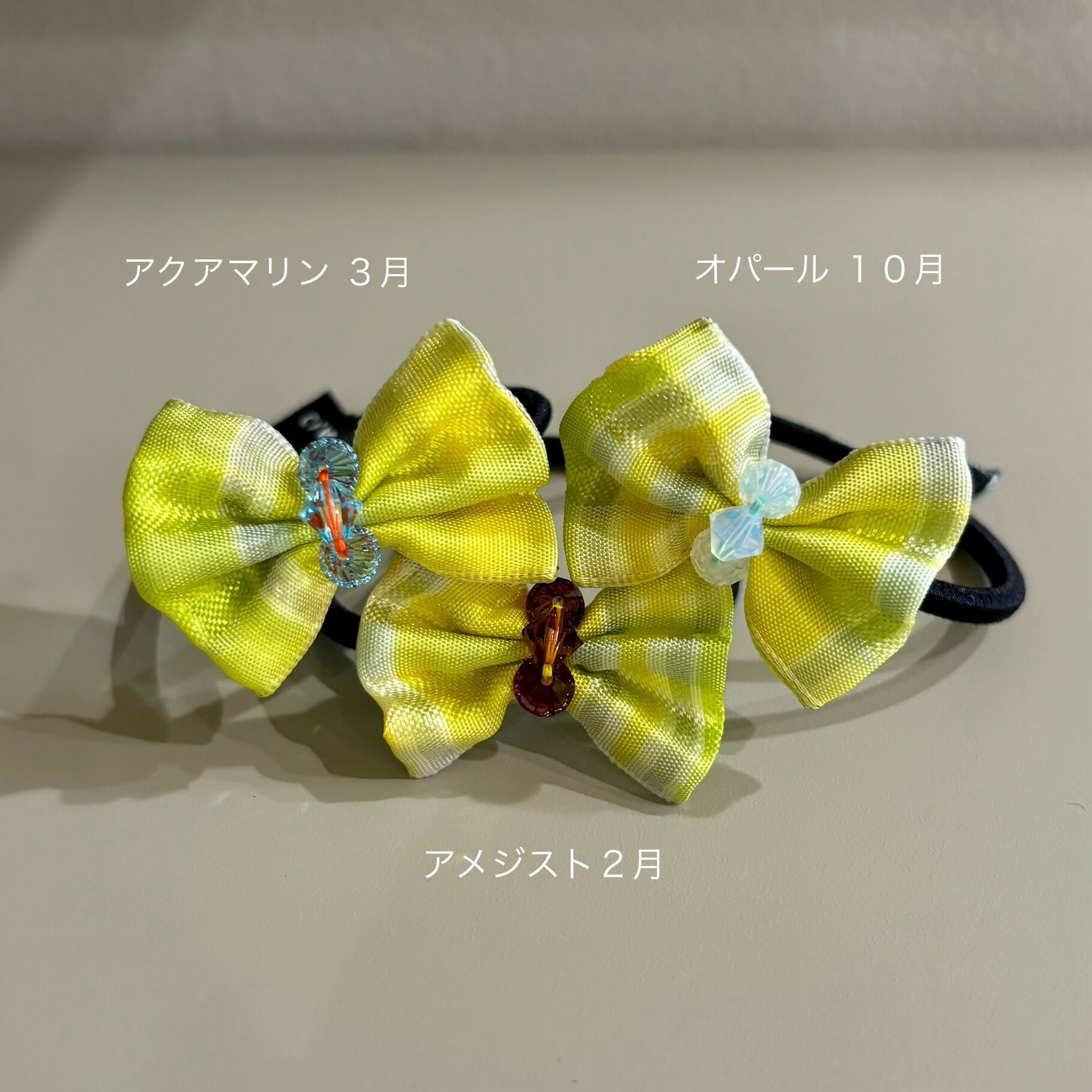 フランス製の美しい生地をベースに誕生石カラーのスワロフスキーや、アルファベットモチーフ、時には海外のヴィンテージチャームなどを施しカラミラーにしかない特別なアイテムをご提案。